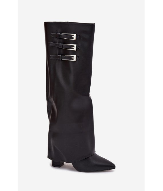 Bota Alta Negra con Hebillas Metálicas