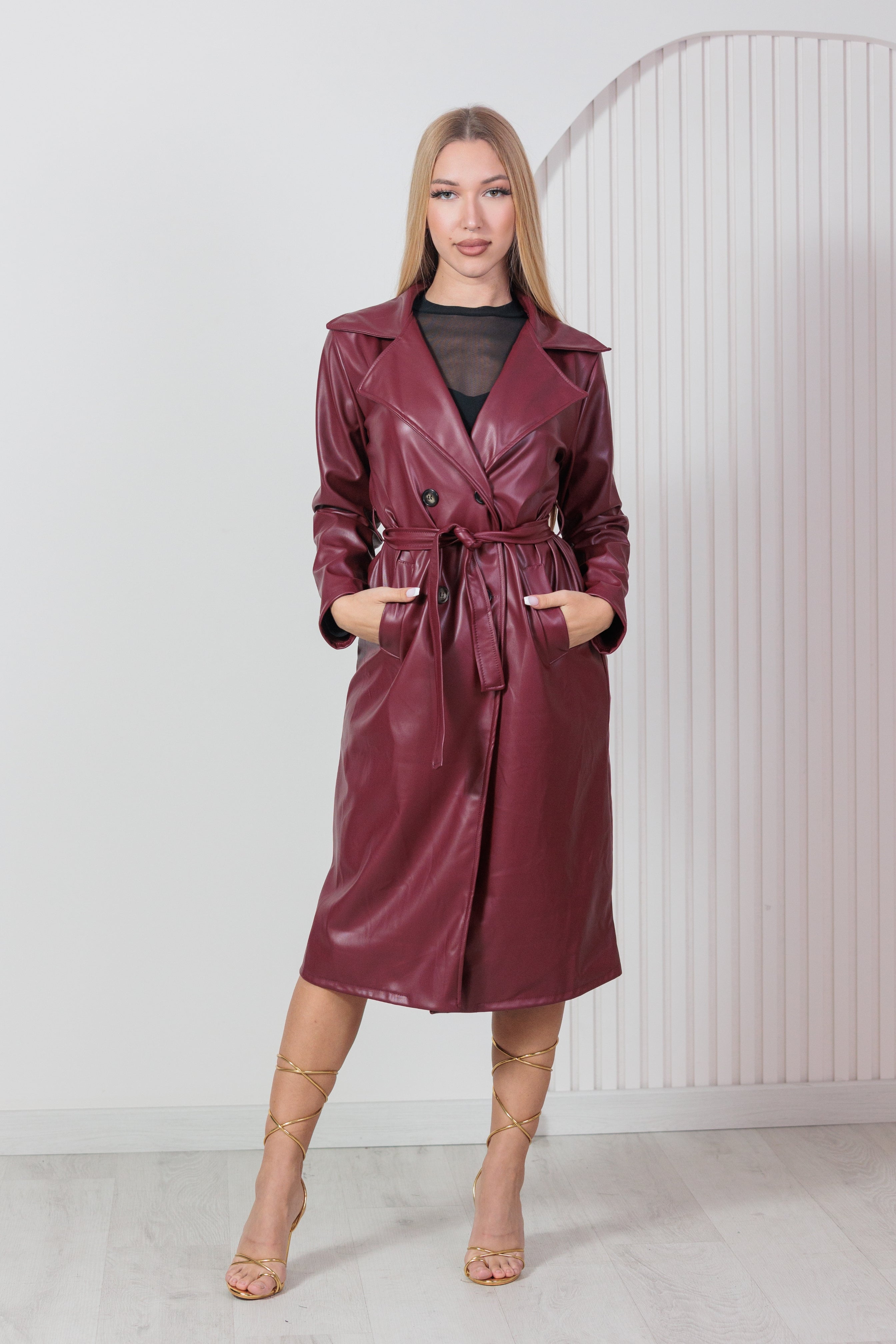 Gabardina efecto cuero burdeos