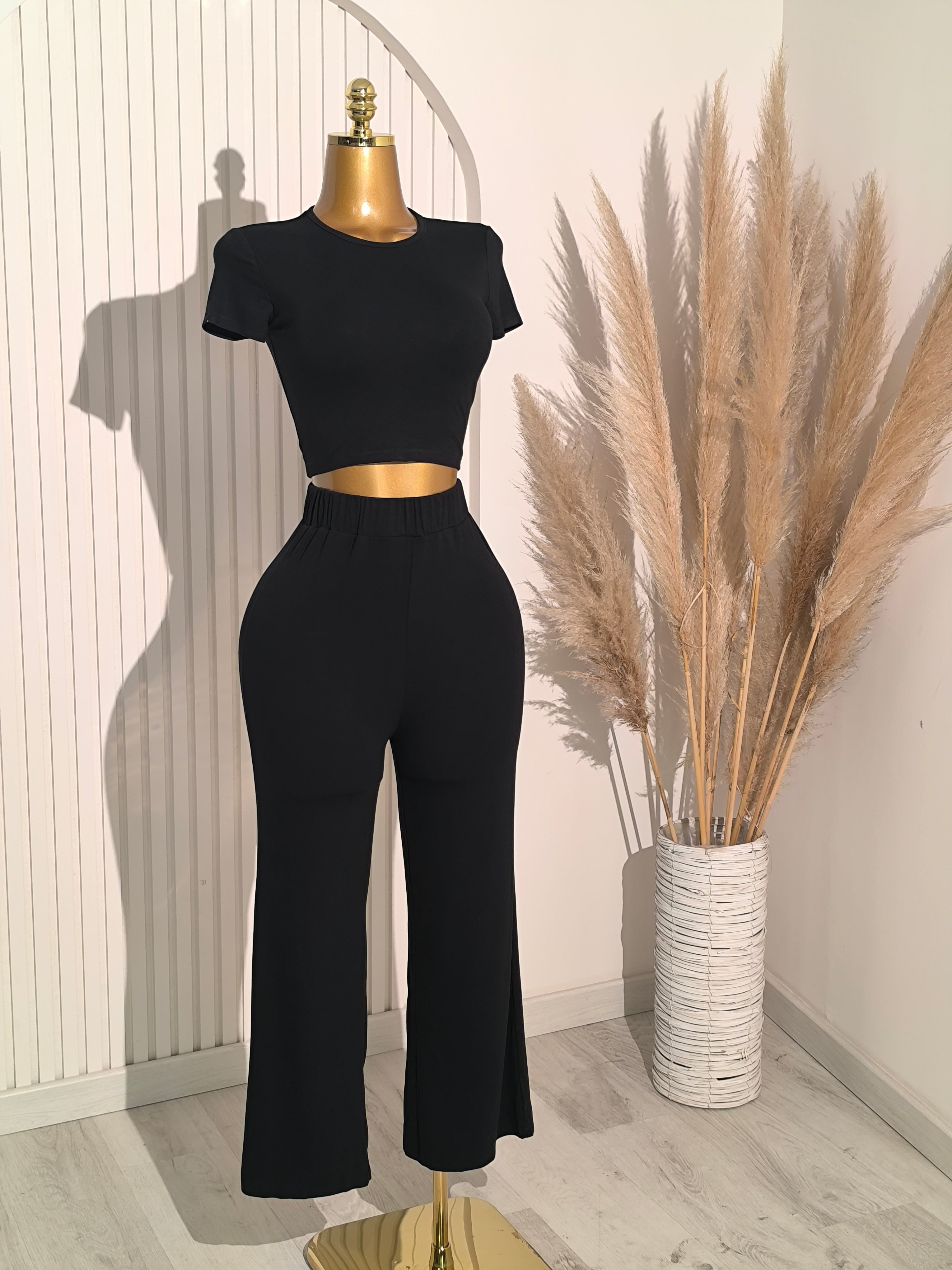 Pantalón efecto campana: estiliza la figura y aporta un look moderno con un movimiento fluido y elegante.
